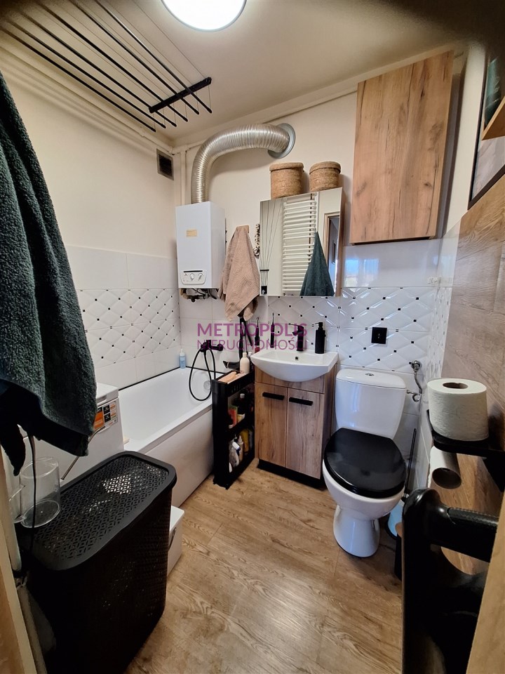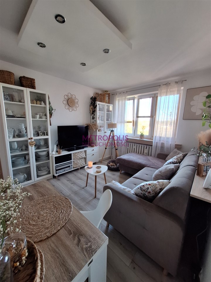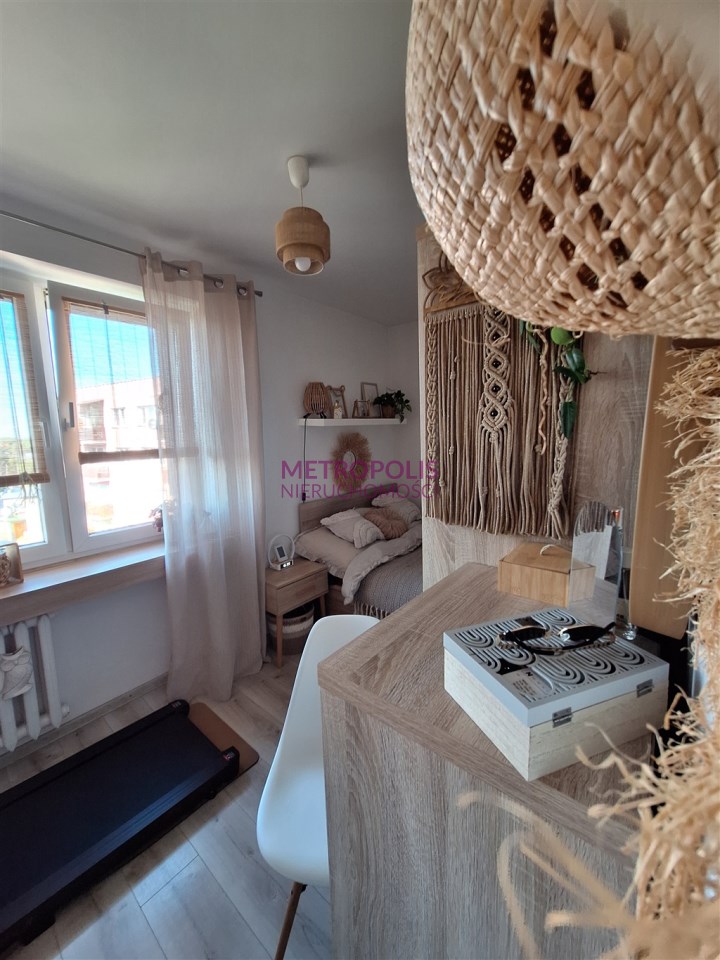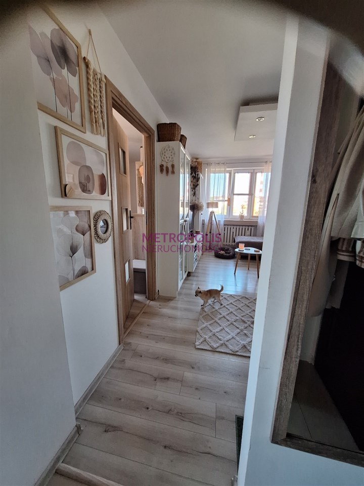 Dwa pokoje, kuchnia z oknem, przedpokój, łazienka, przynależna piwnica. Standard lokalu do zamieszkania, może pozostać umeblowanie. Zamuana na trzy pokoje z balkonem.